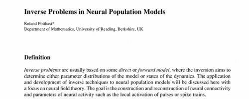 - Potthast, R and beim Graben, P.: Dimensional reduction for the inverse problem of neural Field theory, Frontiers in Neuroscience, Vol.3, 2009, DOI 10.3389/neuro.10/017.2009.